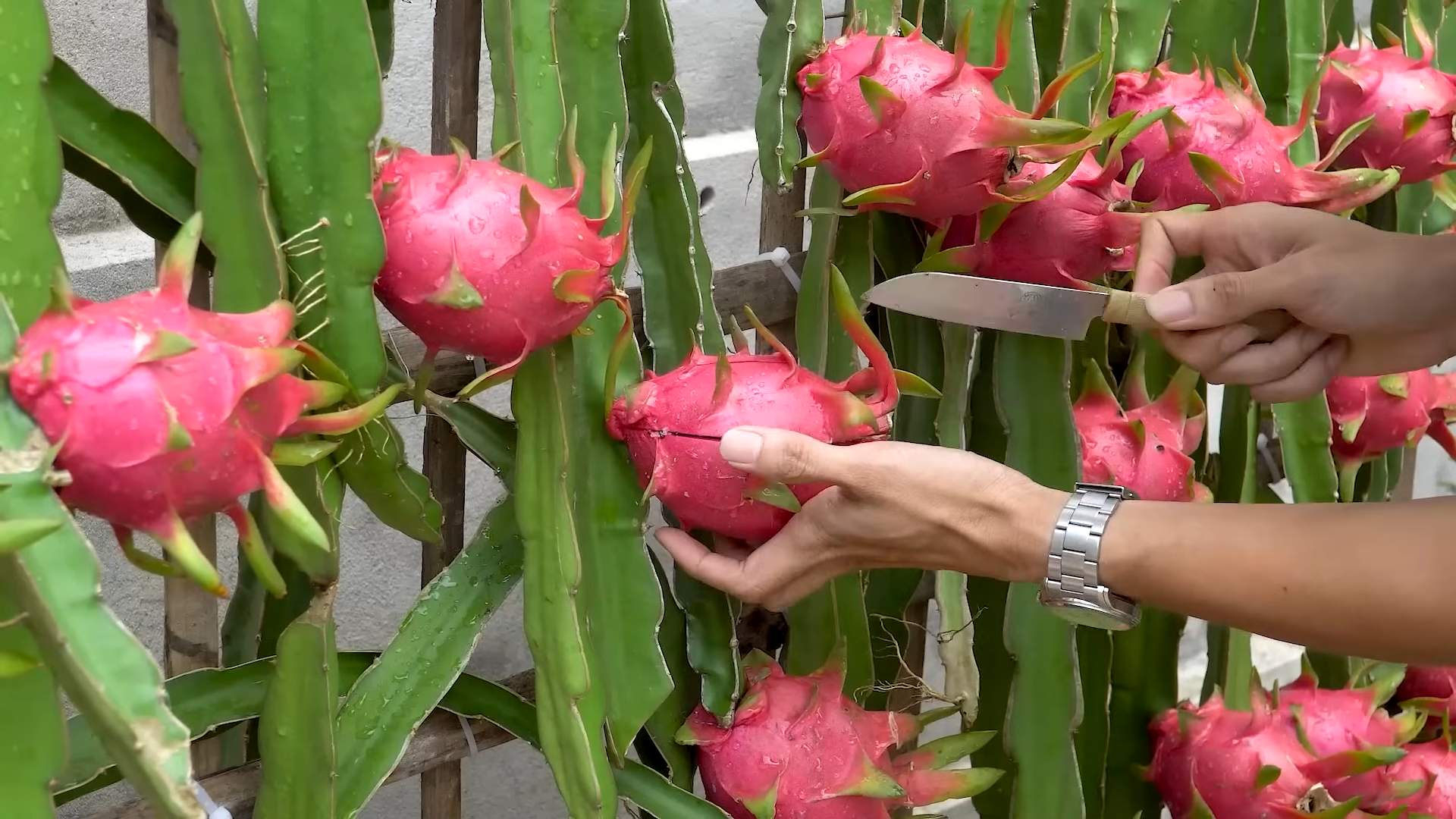 Drachenfrüchte können geschnitten werden, um ihre Form zu kontrollieren und die Fruchtbildung zu fördern. Entferne abgestorbene oder beschädigte Triebe. Du kannst auch lange Triebe einkürzen, um die Pflanze kompakter zu halten. Der beste Zeitpunkt für den Schnitt ist nach der Ernte oder im Frühjahr.