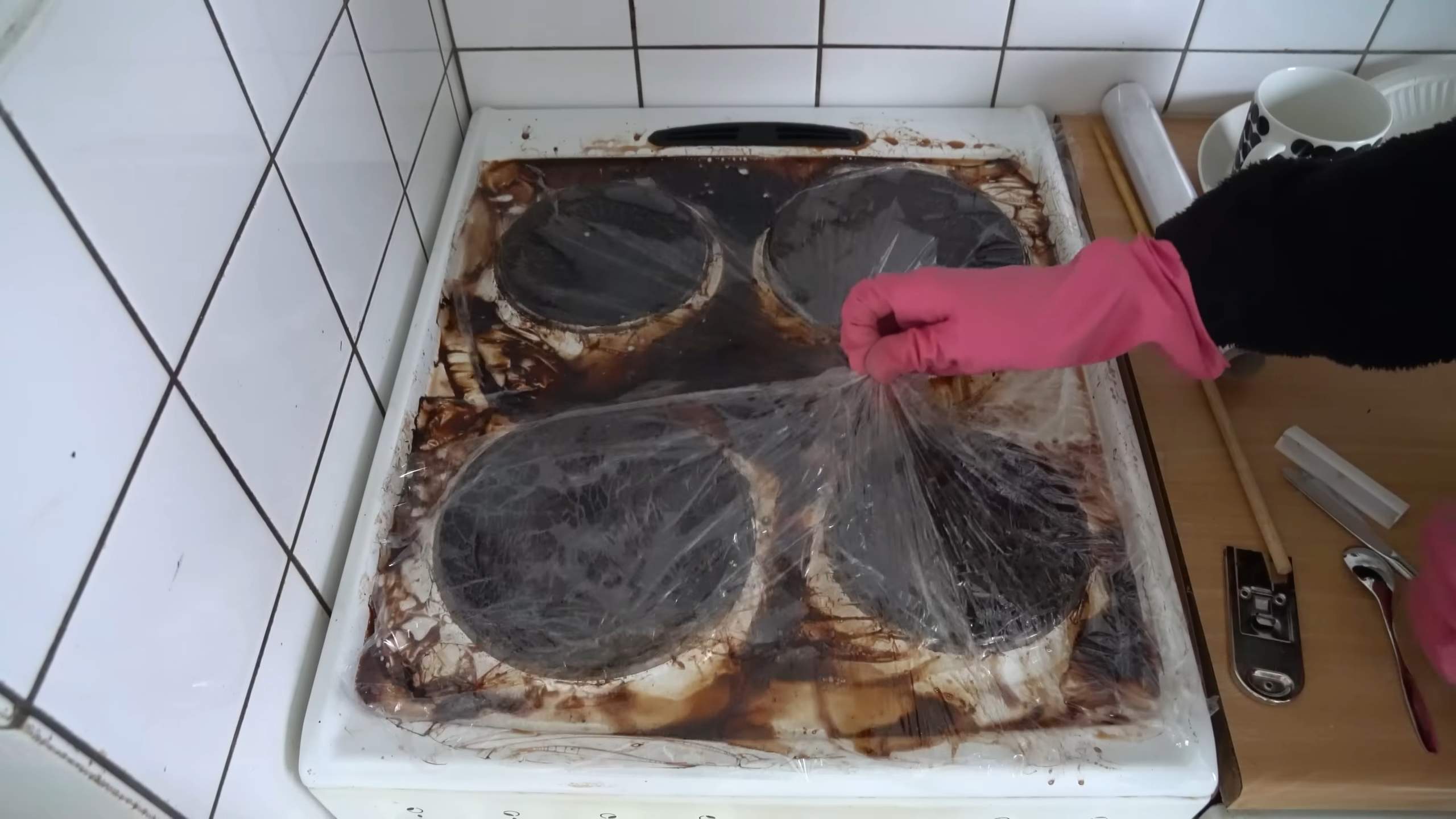Warum funktioniert das? Die Frischhaltefolie sorgt dafür, dass der Reiniger länger auf der Oberfläche bleibt und den Schmutz besser lösen kann. Außerdem verhindert sie, dass sich das Tuch direkt an der Oberfläche reibt, was Streifen verursachen kann.