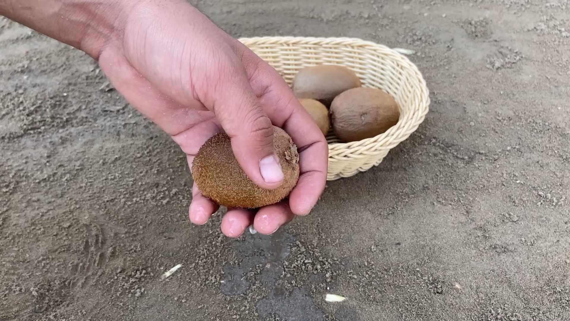 1. Kiwis vorbereiten: Wählt reife, weiche Kiwis aus. Schneidet die Kiwis in der Mitte durch.