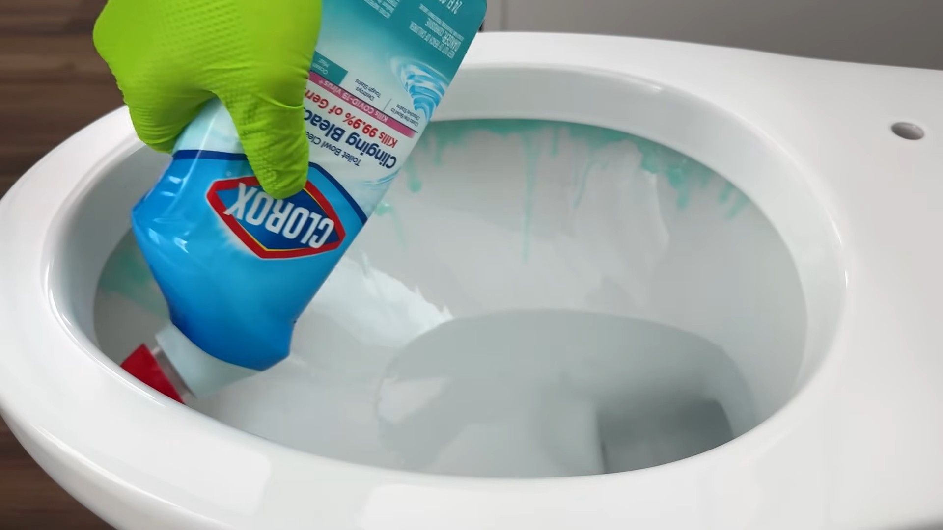 2. Anwenden: Gieße die Lösung in die Toilette und lasse sie mindestens eine Stunde einwirken.