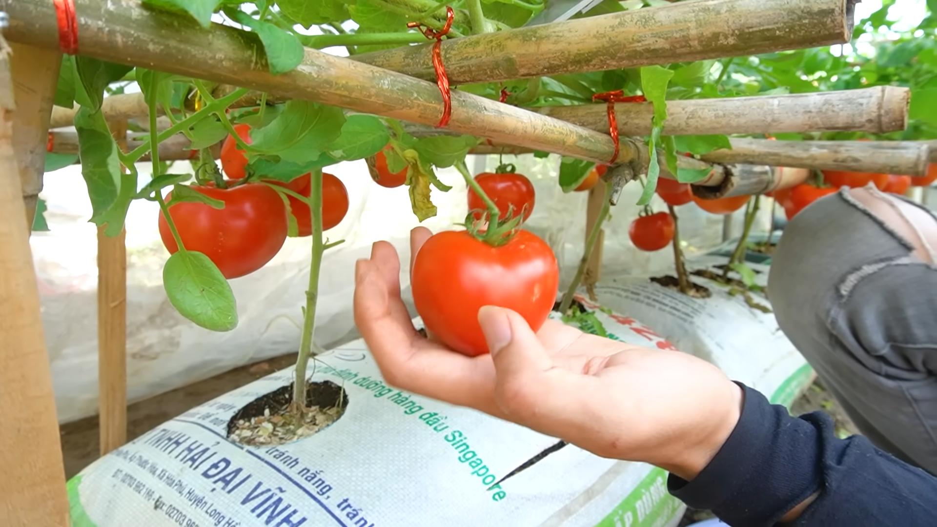 2. Ernten: Pflücke die reifen Tomaten vorsichtig ab.